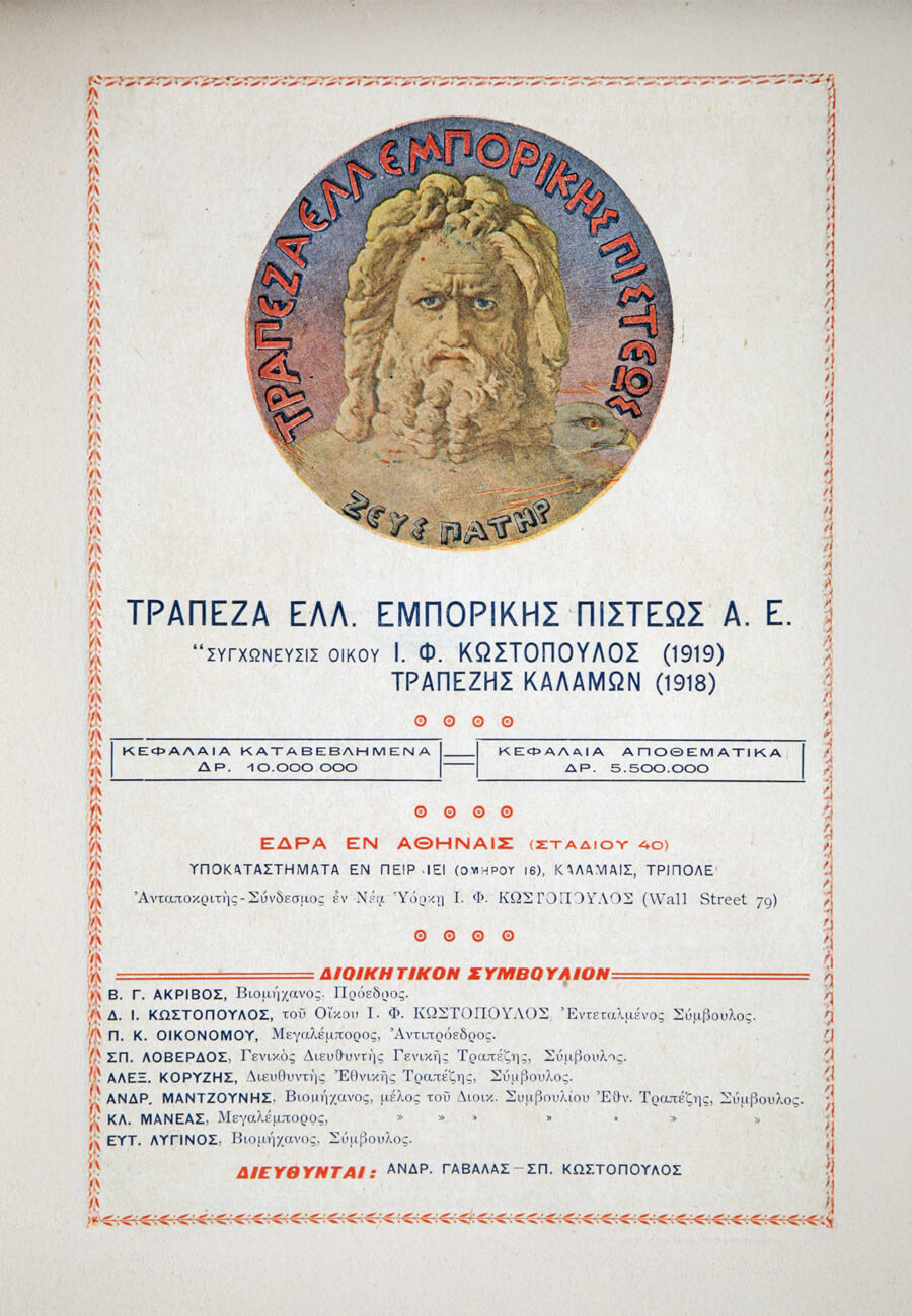 Σε αυτό το ιστορικό πεδίο, ένας θεσμικός παίκτης έχει γράψει τη δική του, εξίσου σημαντική, πορεία: η Alpha Bank, της οποίας οι ρίζες φτάνουν πίσω στο 1879, με την ίδρυση του Εμπορικού Οίκου Ι.Φ. Κωστοπούλου στην Καλαμάτα. Αυτή η ταυτόχρονη ανάπτυξη των δύο ιστοριών δεν είναι τυχαία· αντιπροσωπεύει την αναγκαιότητα της συνύπαρξης μιας δυναμικής επιχειρηματικής πρωτοβουλίας με ένα οργανωμένο χρηματοπιστωτικό σύστημα. Η μετεξέλιξη αυτού του οίκου, πρώτα σε Τράπεζα Καλαμών (1918) και έπειτα, με την κρίσιμη απόφαση της μεταφοράς της έδρας στην Αθήνα και τη συγχώνευση, σε Τράπεζα Ελληνικής Εμπορικής Πίστεως (1924), έθεσε τα θεμέλια για μια τραπεζική δυναμική που θα αλληλεπίδρα σε βάθος με την ελληνική κεφαλαιαγορά.