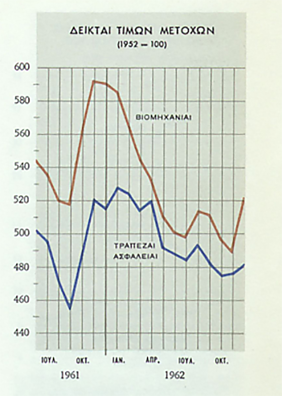 Μετά τον Εμφύλιο Πόλεμο, η ελληνική αγορά έδειχνε σημάδια ζωής και αναζήτησης. Η ζήτηση για μετοχές αυξανόταν και η Alpha Bank, που τότε λειτουργούσε ακόμη ως Τράπεζα Ελληνικής Εμπορικής Πίστεως, βρισκόταν στο επίκεντρο αυτού του ενδιαφέροντος. Η μεταπολεμική περίοδος ζήτησε ανασυγκρότηση και νέες πηγές κεφαλαίου, και το χρηματιστήριο άρχισε να αναδεικνύεται ως κρίσιμος μοχλός για αυτόν τον σκοπό. Μια καθοριστική στροφή ήρθε το 1950. Ήδη από τις αρχές της δεκαετίας του 1960, η ανάγκη για συστηματική αποτύπωση της πορείας της αγοράς οδηγεί στη δημιουργία άτυπων δεικτών, όπως ο Γενικός Δείκτης Τιμών της Εμπορικής Τράπεζας το 1961. Το διάγραμμα αυτό λειτουργεί ως πρόδρομος του επίσημου Γενικού Δείκτη, που θα θεσμοθετηθεί από το Χρηματιστήριο Αξιών Αθηνών το 1964, σηματοδοτώντας τη μετάβαση από μια εμπειρική σε μια θεσμικά οργανωμένη κεφαλαιαγορά. Με την εισήγηση της τότε Αμερικανικής Οικονομικής Αποστολής στον Υπουργό Εθνικής Οικονομίας για φορολογικούς λόγους, το χρηματιστήριο προχώρησε στη μεταρρύθμιση της ονομαστικοποίησης των μετοχών, μετατρέποντάς τες από ανώνυμες σε ονομαστικές.